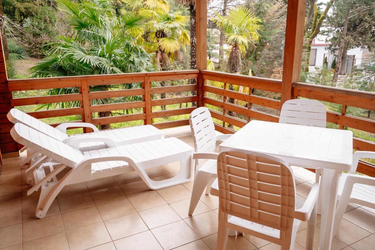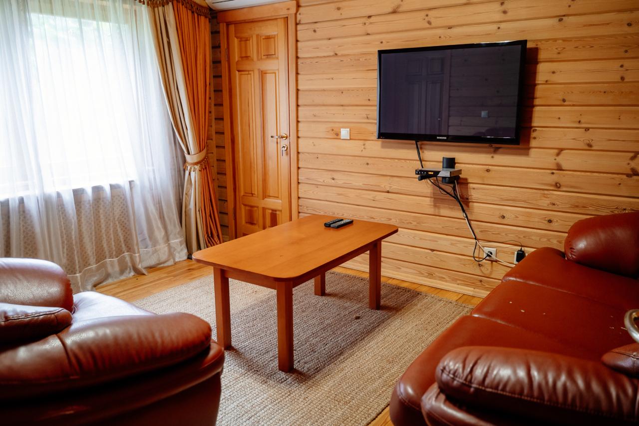 В коттедже: оборудованная необходимой мебелью и бытовой техникой кухня-столовая, гостиная, прихожая, сауна с комнатой отдыха, телевизоры со спутниковыми каналами, открытая терраса с ротанговой мебелью, мангал. На втором этаже располагаются две спальни с «французской» кроватью и с двумя односпальными кроватями. В ванной комнате: душевая кабина, набор полотенец, банные халаты, тапочки, фен. Окна выходят на парк.