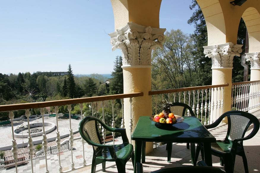 3 осн. места. 1 доп. место. Площадь номера 56 кв. м. В номере хорошая мебель: одна французская кровать и в зависимости от конкретного номера или полуторо-спальная кровать и раскладывающийся диван или два дивана, телевизор, телефон, холодильник, сплит – система, электрочайник, платяной шкаф. В ванной: душевая кабина, современная сантехника, фен, набор гостеприимства, набор полотенец. Окна номеров выходят на парк в сторону моря.