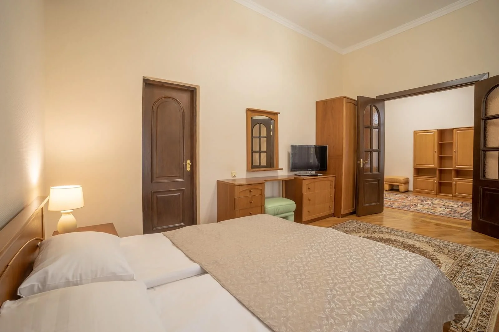 В номере: двуспальная кровать, 2х местный диван-кровать, телевизор, телефон, холодильник, сплит-система кондиционирования, радио, индивидуальный сейф